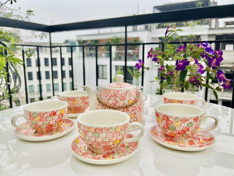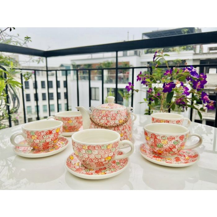 Sản phẩm gồm ấm trà 1000ml và bộ 6 chén gồm đĩa kê!